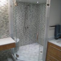 A custom shower enclosure is any odd shape that does not fit into any of the named shower enclosure types above. They can have multiple angles and panels. They can be zig-zag shapes. They can be combinations of more than one of the other types of shower enclosure mixed together such as a multi-paneled Neo-Angle connected to a 90º at one end. I have had 90º inside corners with 90º outside corners on the same shower enclosure. The biggest problem with Custom Shower enclosures is that there are rules that need to be followed in order to use the frameless shower door hardware that is on the market.
